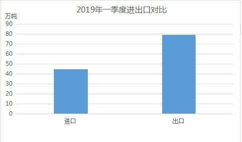 1.2019年1季度全国进口不锈钢45.10万吨,其中一月13.40万吨,二月10.86万吨,三月20.84万吨,与2018年1季度同比减少25.51万吨,降低了35.21%;
